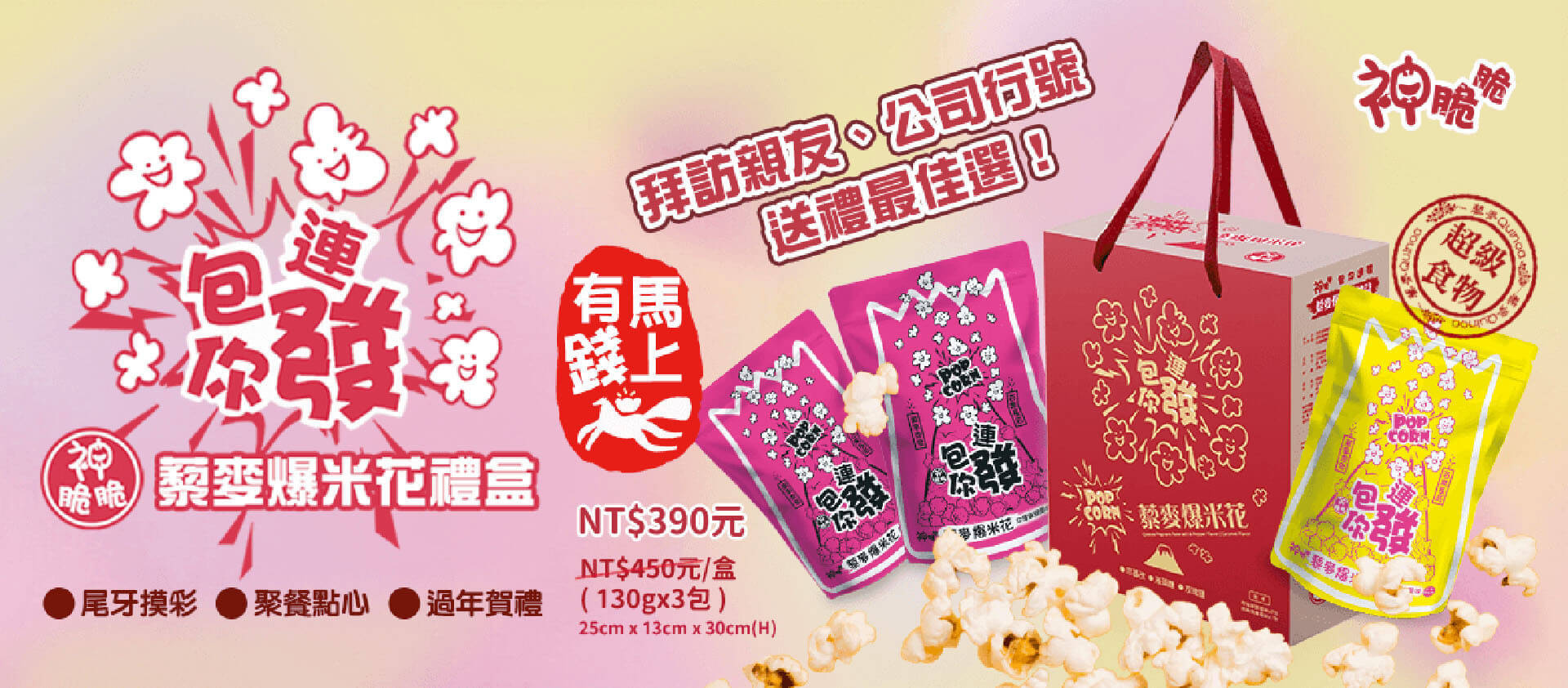 【神脆脆】包你連發 藜麥爆米花禮盒(玫瑰椒鹽2包入&經典焦糖1包入)