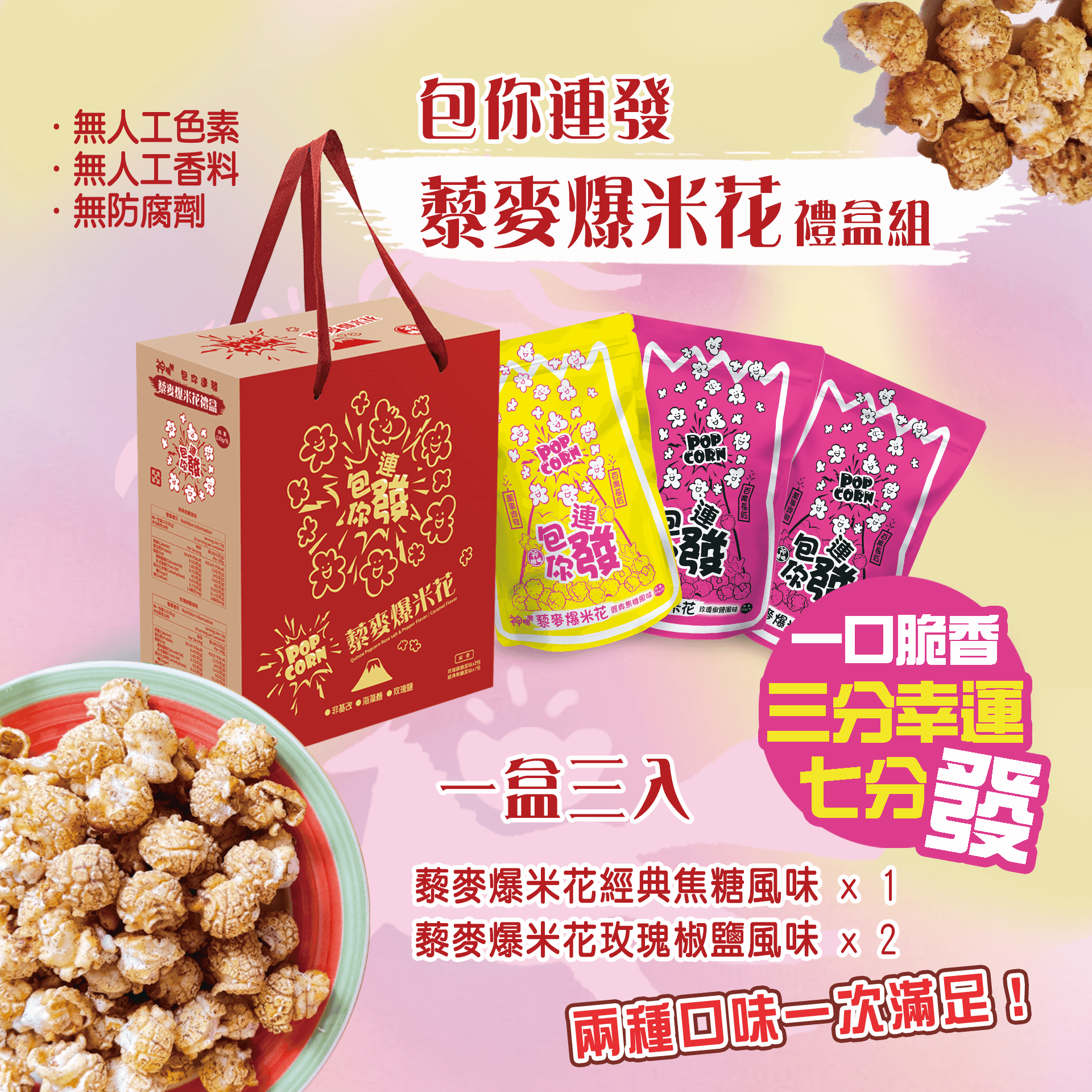【神脆脆】包你連發 藜麥爆米花禮盒(玫瑰椒鹽2包入&經典焦糖1包入)